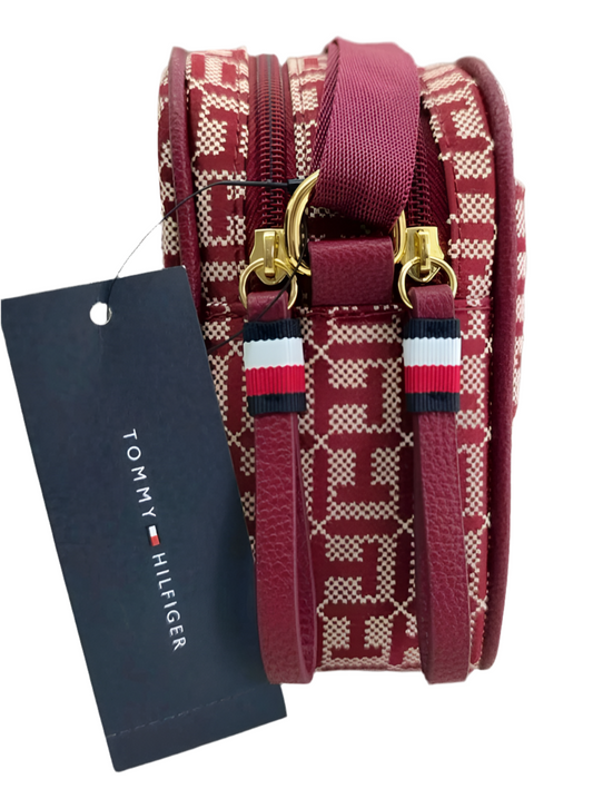 Blusa TH cuello V blanca con rayas en azul y rojo
