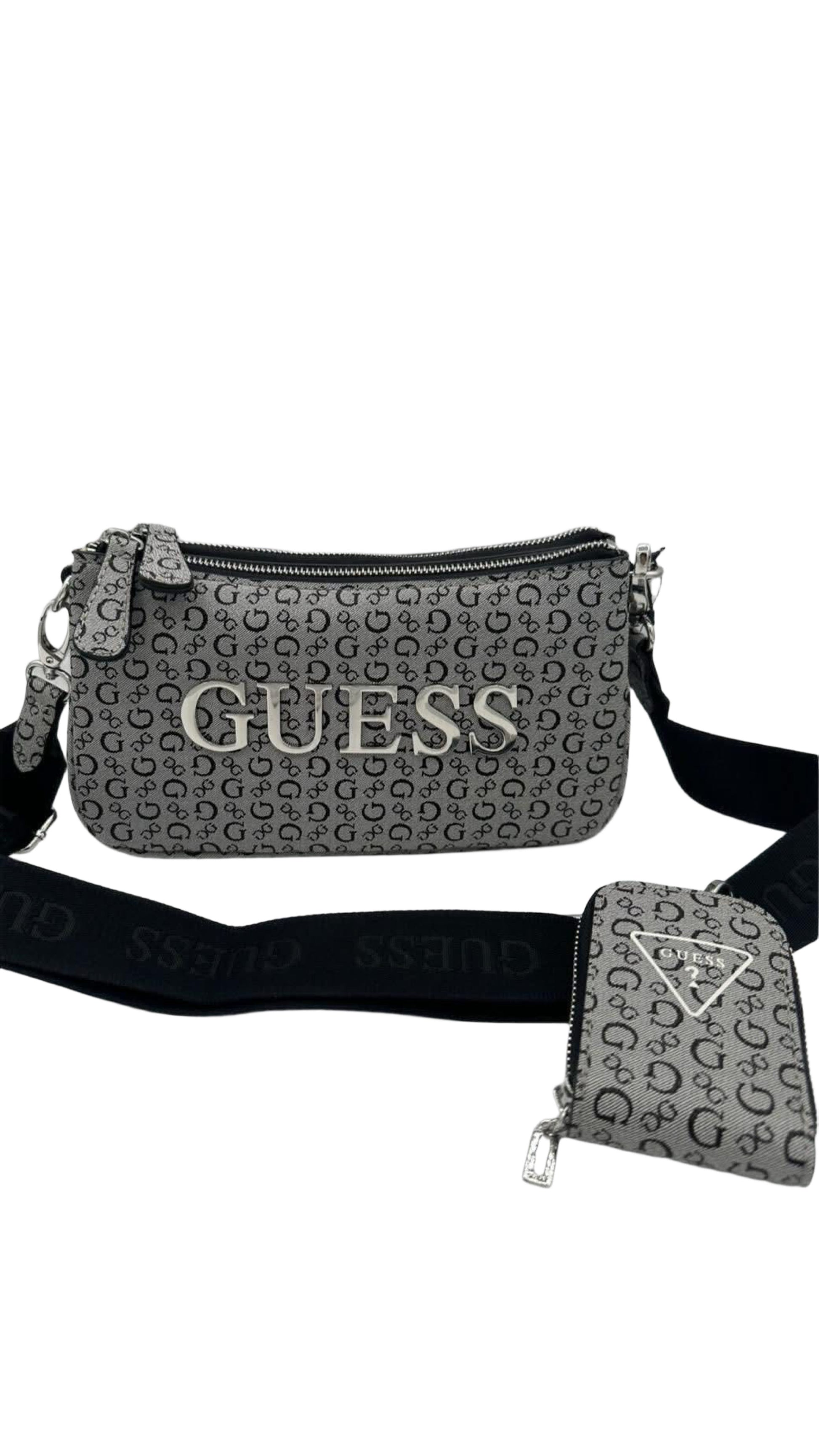 Bolso Guess doble zipper gris con monedero